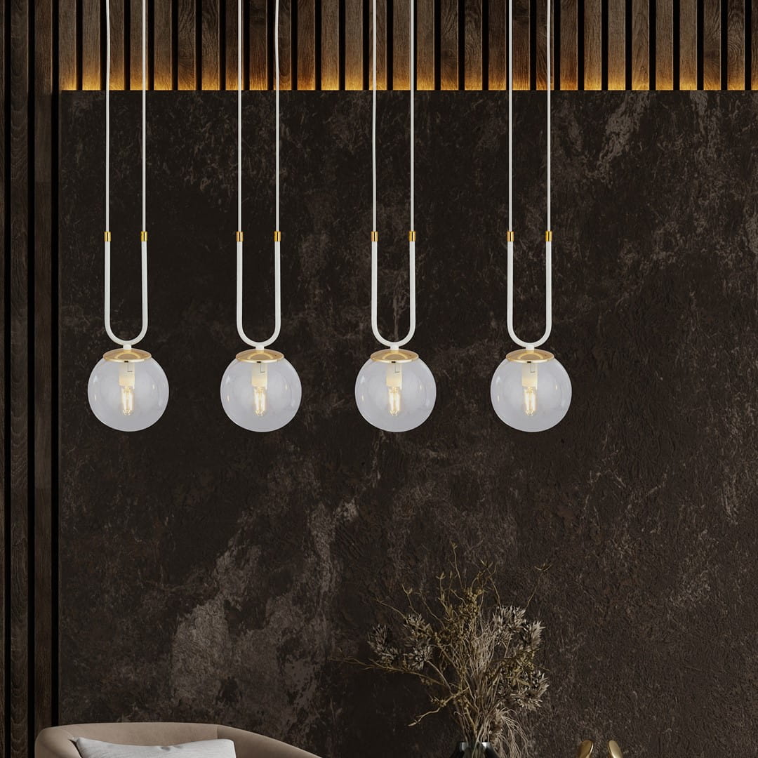 Lampa Wisząca GLAM Biało Złota KLOSZ Transparentny / 4xE14