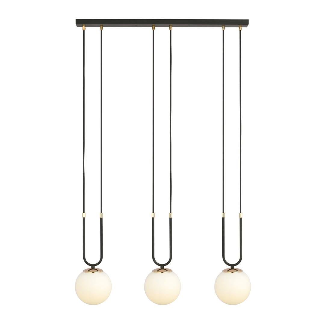 Lampa Wisząca GLAM Czarno Złota KLOSZ Opal / 3xE14