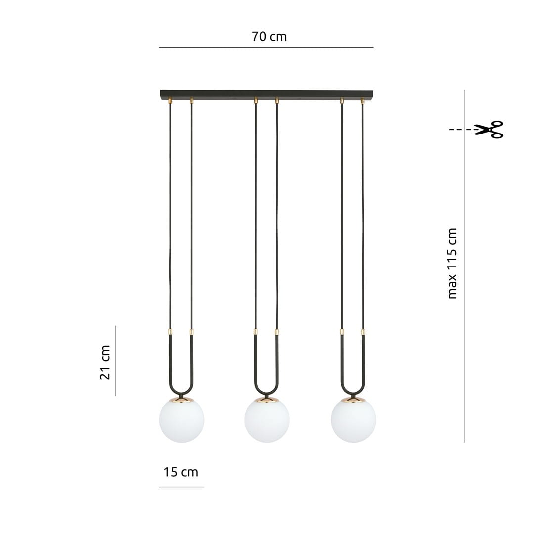 Najlepszy wybór do jadalni, salonu czy nad wyspę kuchenną. Trzy efektowne klosze w różnych wariantach kolorystycznych tworzą harmonijną kompozycję, łączącą funkcjonalność i dekoracyjność.