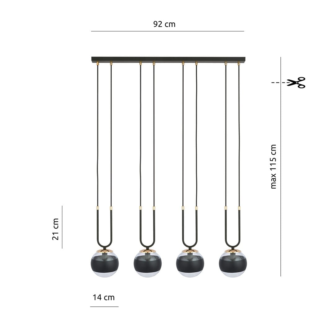 Lampa Wisząca GLAM Czarno Złota KLOSZ Pas / 4xE14