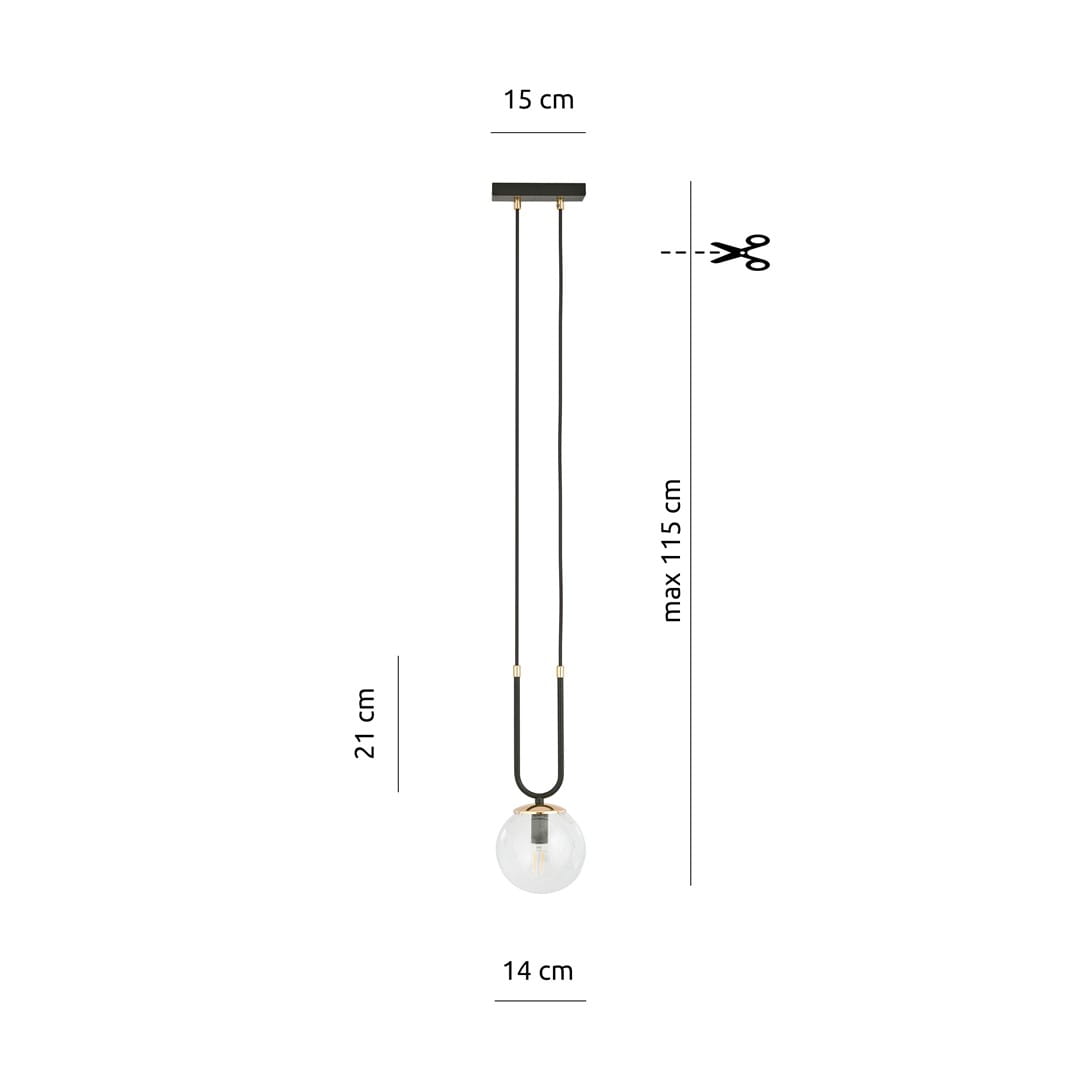 Lampa Wisząca GLAM Czarno Złota KLOSZ Transparentny / 1xE14