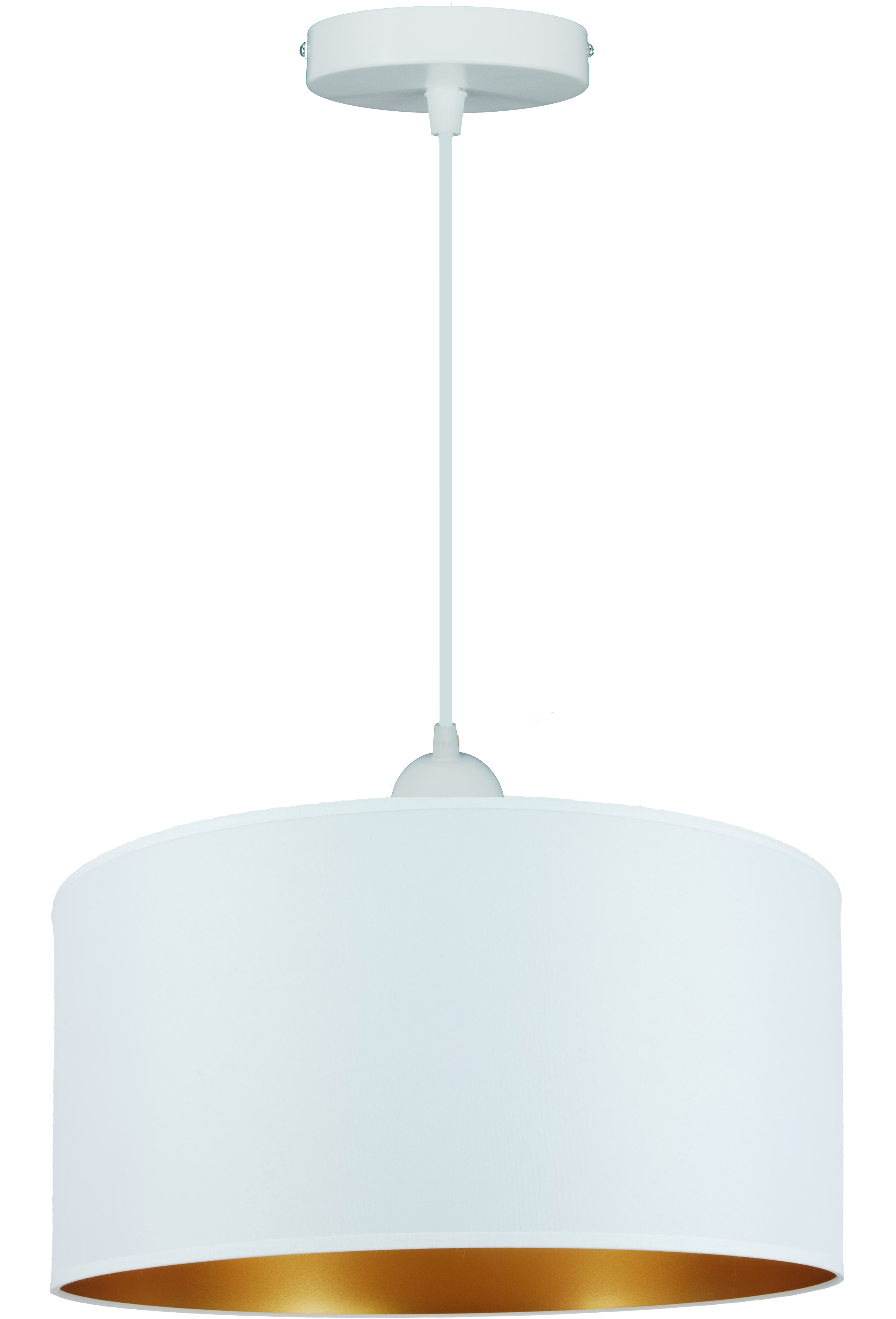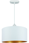 Ta lampa to połączenie elegancji i nowoczesności. Białe wykończenie abażuru w połączeniu z połyskującą złotą folią wewnątrz tworzy efektowne kontrasty, które dodają wnętrzu charakteru. Zewnętrzna czerń wprowadza nutę klasyki i tajemniczości, podczas gdy złote wnętrze delikatnie odbija światło, tworząc ciepłą, przytulną atmosferę.
