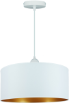 Ta lampa to połączenie elegancji i nowoczesności. Białe wykończenie abażuru w połączeniu z połyskującą złotą folią wewnątrz tworzy efektowne kontrasty, które dodają wnętrzu charakteru. Zewnętrzna czerń wprowadza nutę klasyki i tajemniczości, podczas gdy złote wnętrze delikatnie odbija światło, tworząc ciepłą, przytulną atmosferę.