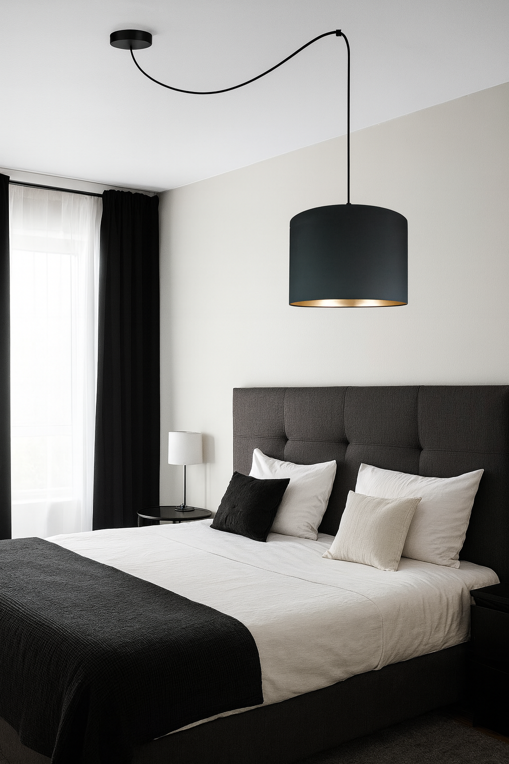 Kolekcja GOLDEN – Czarny to połączenie nowoczesnej elegancji, luksusowego wykończenia i funkcjonalności. Charakterystyczny element tej serii to czarny abażur z efektownym, złotym wnętrzem, które pięknie odbija światło i tworzy wyjątkowo ciepłą, nastrojową atmosferę.