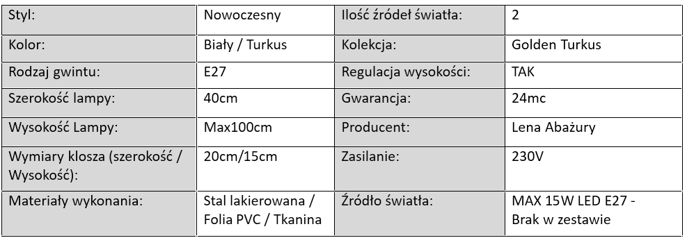 Lampa Wisząca Golden Turkusowa / 2xE27