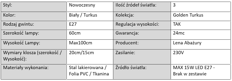 Lampa Wisząca Golden Turkusowa / 3xE27