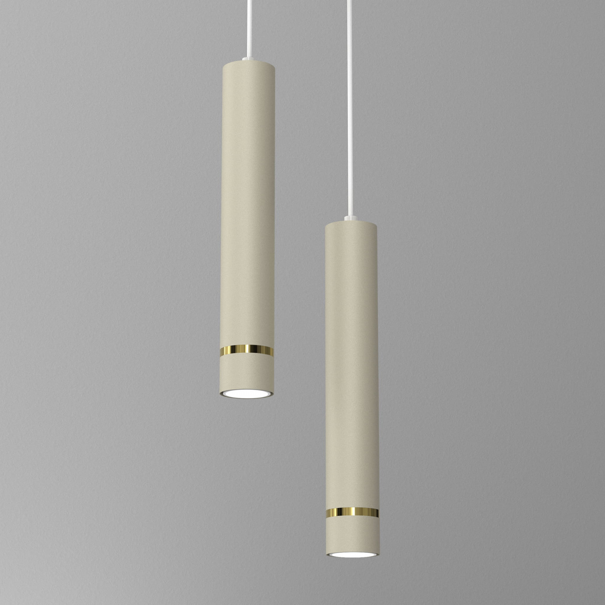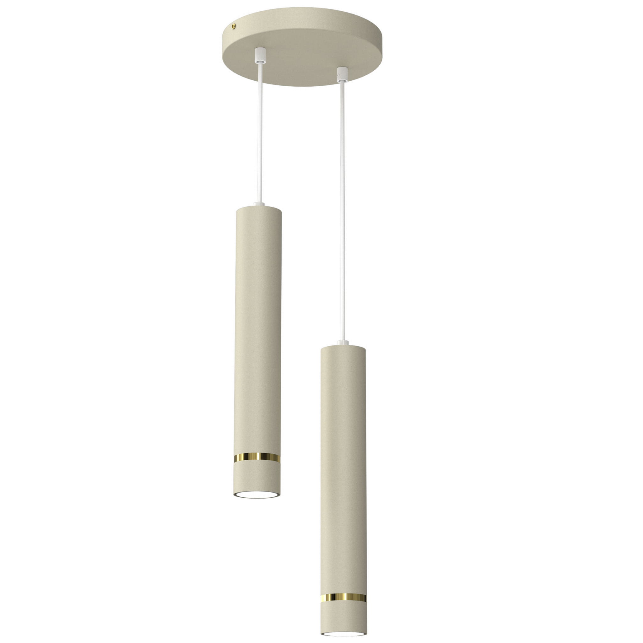Aurora Gold Beżowa podwójna to elegancka, minimalistyczna lampa wisząca, która łączy nowoczesny design z subtelnym, dekoracyjnym wykończeniem. Dwie smukłe, cylindryczne tuby w modnym beżowym kolorze zostały ozdobione delikatnym złotym detalem, który nadaje lampie luksusowego charakteru.
