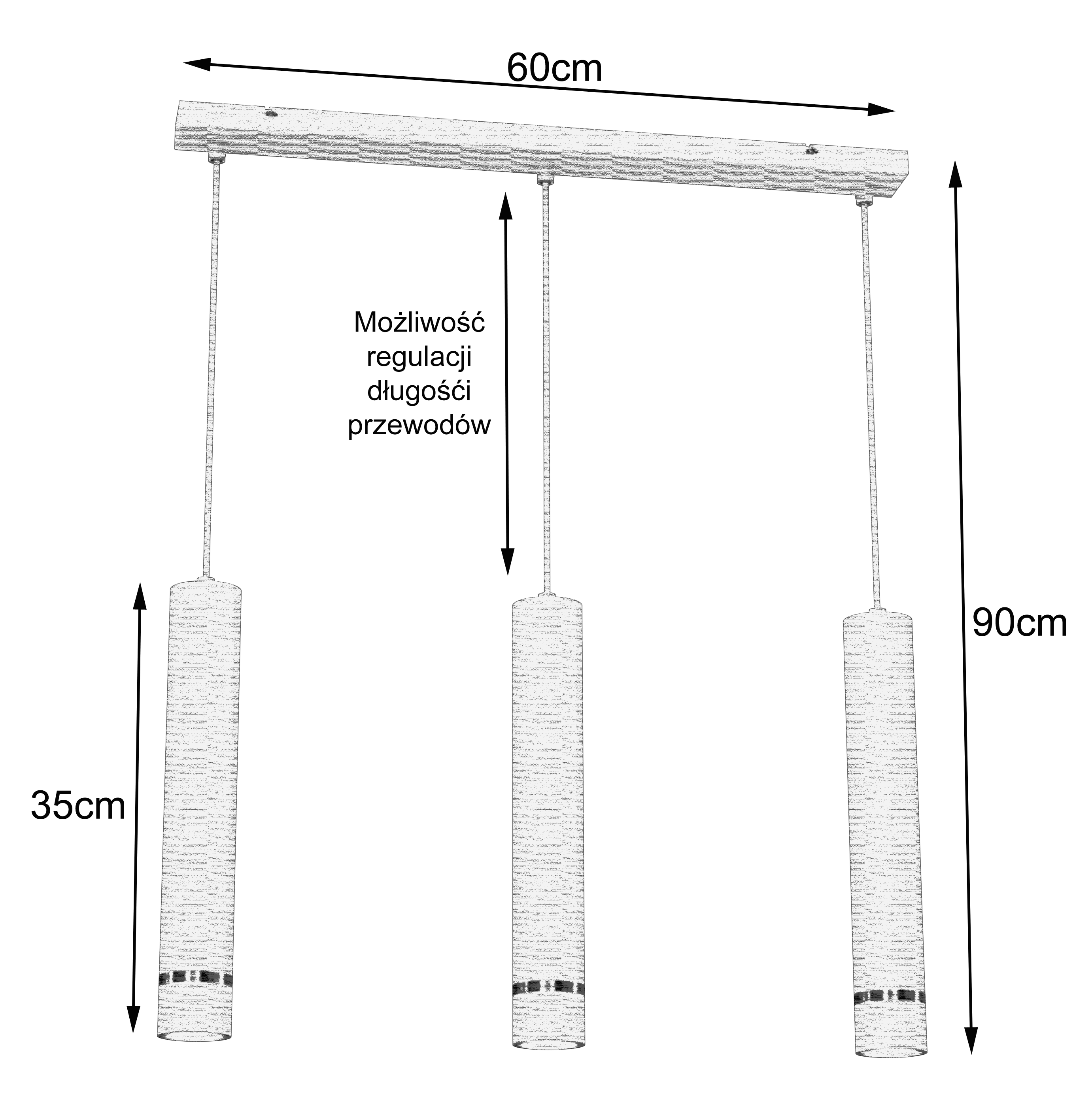 Prosta, geometryczna listwa montażowa oraz trzy cylindryczne klosze tworzą harmonijną kompozycję, która świetnie wpisuje się w aranżacje nowoczesne, modern classic, glamour oraz japandi.