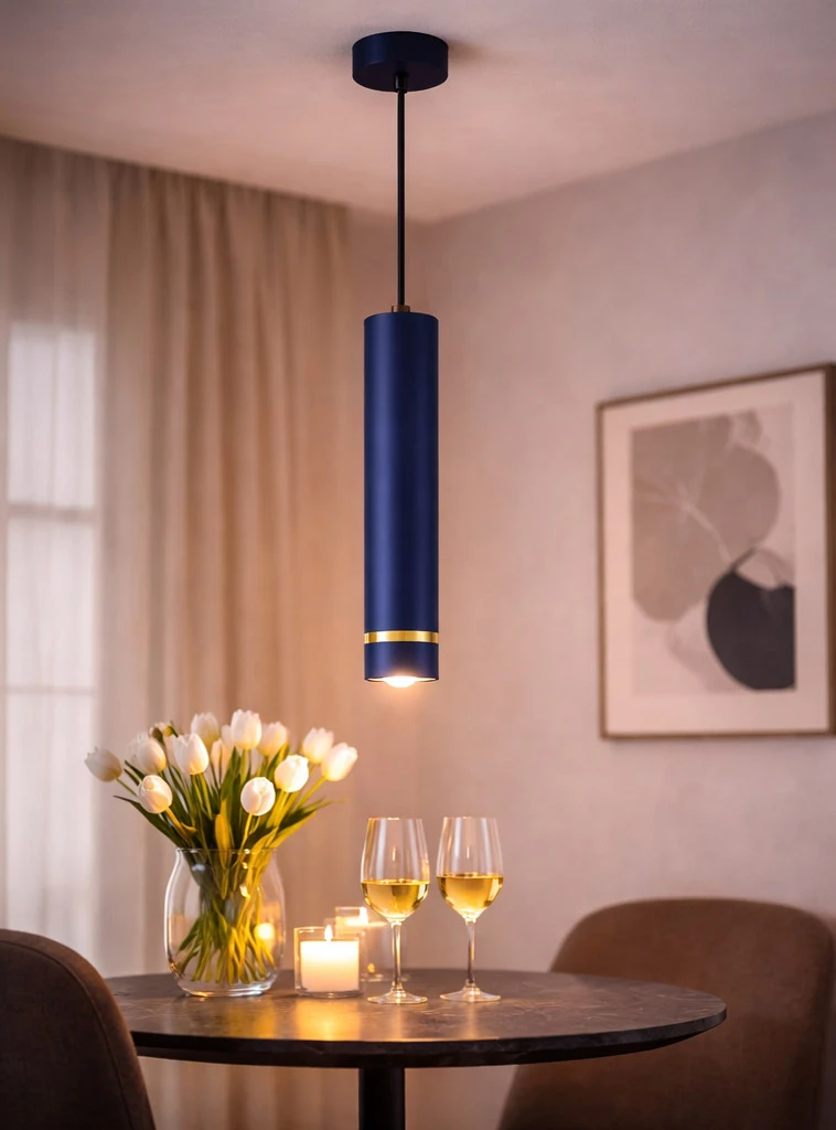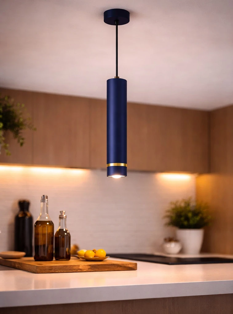 Smukła, cylindryczna forma sprawia, że lampa doskonale prezentuje się zarówno pojedynczo, jak i w większych kompozycjach. To idealny wybór nad stół, wyspę kuchenną lub blat, gdzie liczy się precyzyjne, punktowe oświetlenie oraz stylowy wygląd.