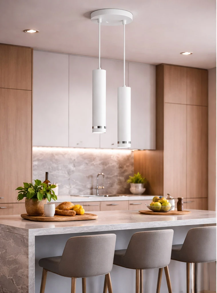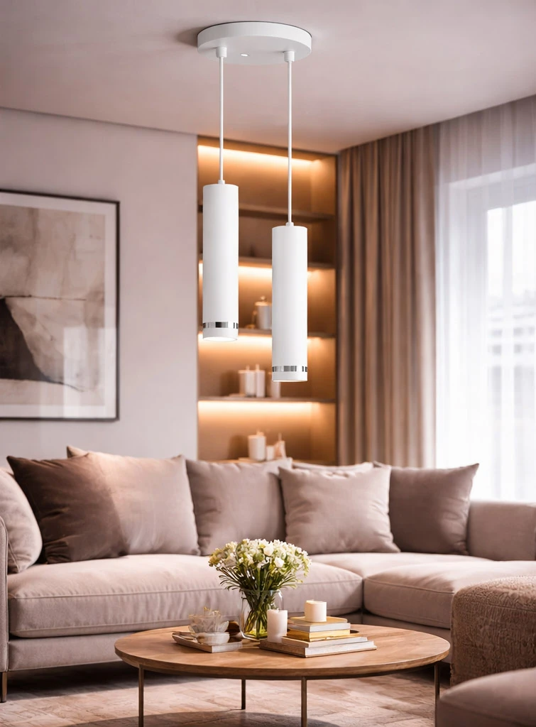 Podwójna forma lampy nadaje przestrzeni wyjątkowego charakteru. Proste, cylindryczne kształty doskonale wpisują się w aranżacje w stylu nowoczesnym, skandynawskim, japandi oraz modern classic. Biało-srebrna kolorystyka sprawia, że lampa jest uniwersalna i ponadczasowa.