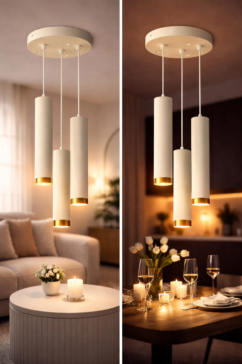 Poznaj jeszcze bardziej efektowną odsłonę eleganckiego oświetlenia. Aurora Luxe Gold Beżowa 3 to designerska lampa wisząca z trzema smukłymi kloszami, która łączy minimalistyczną formę z luksusowym wykończeniem. To idealny wybór dla osób, które chcą stworzyć wyjątkową, dopracowaną aranżację wnętrza.