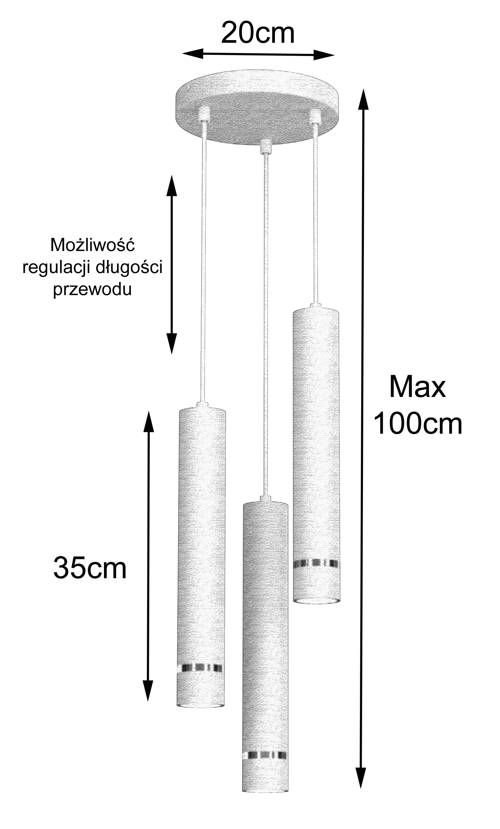 Świetnie sprawdzi się nad stołem, wyspą kuchenną lub w wysokich pomieszczeniach.