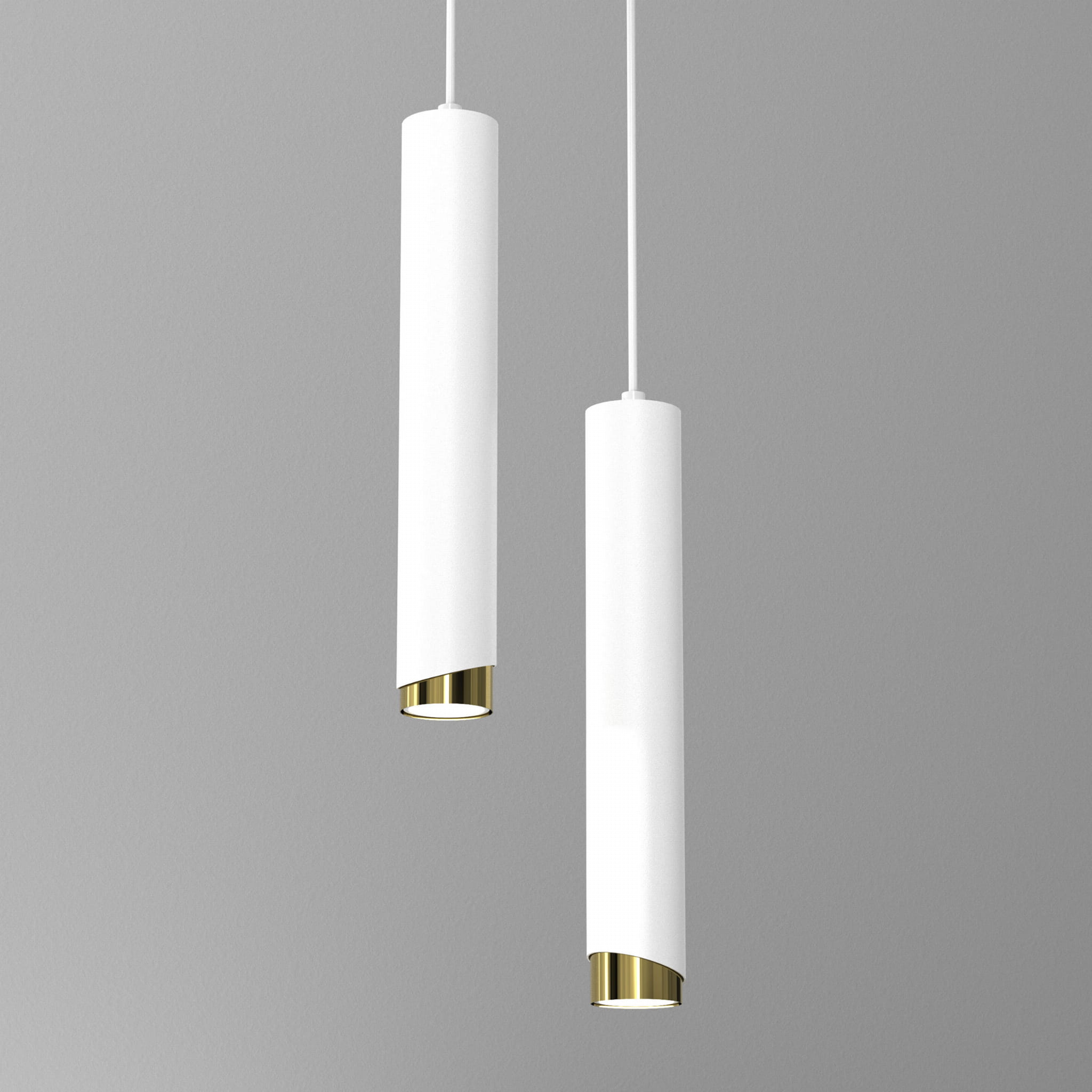 Smukłe, wydłużone tuby nadają lampie lekkości i elegancji, a złote wykończenie w dolnej części klosza podkreśla jej ekskluzywny charakter. Dzięki prostej formie lampa doskonale komponuje się z nowoczesnymi materiałami takimi jak drewno, marmur, beton czy metal.