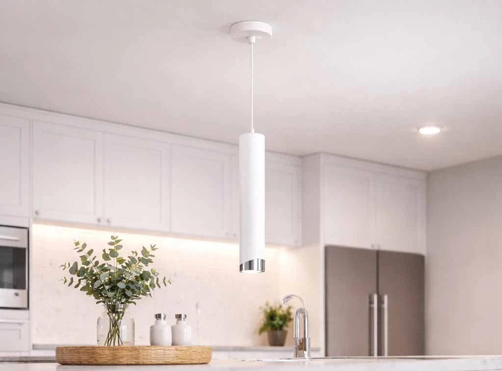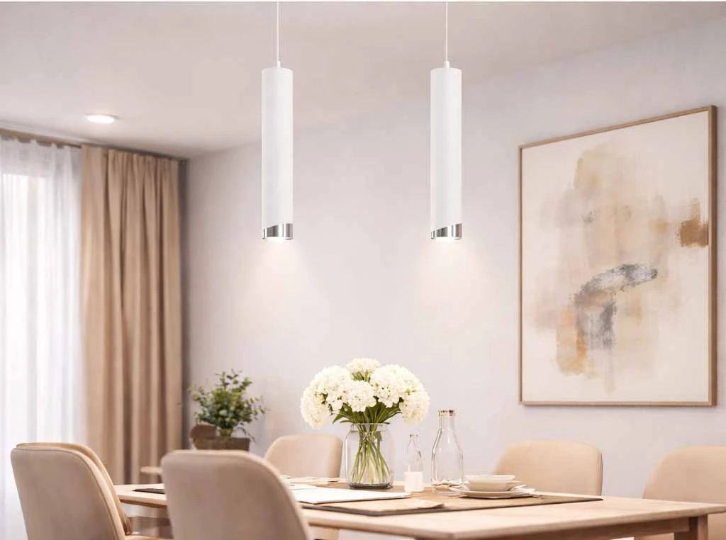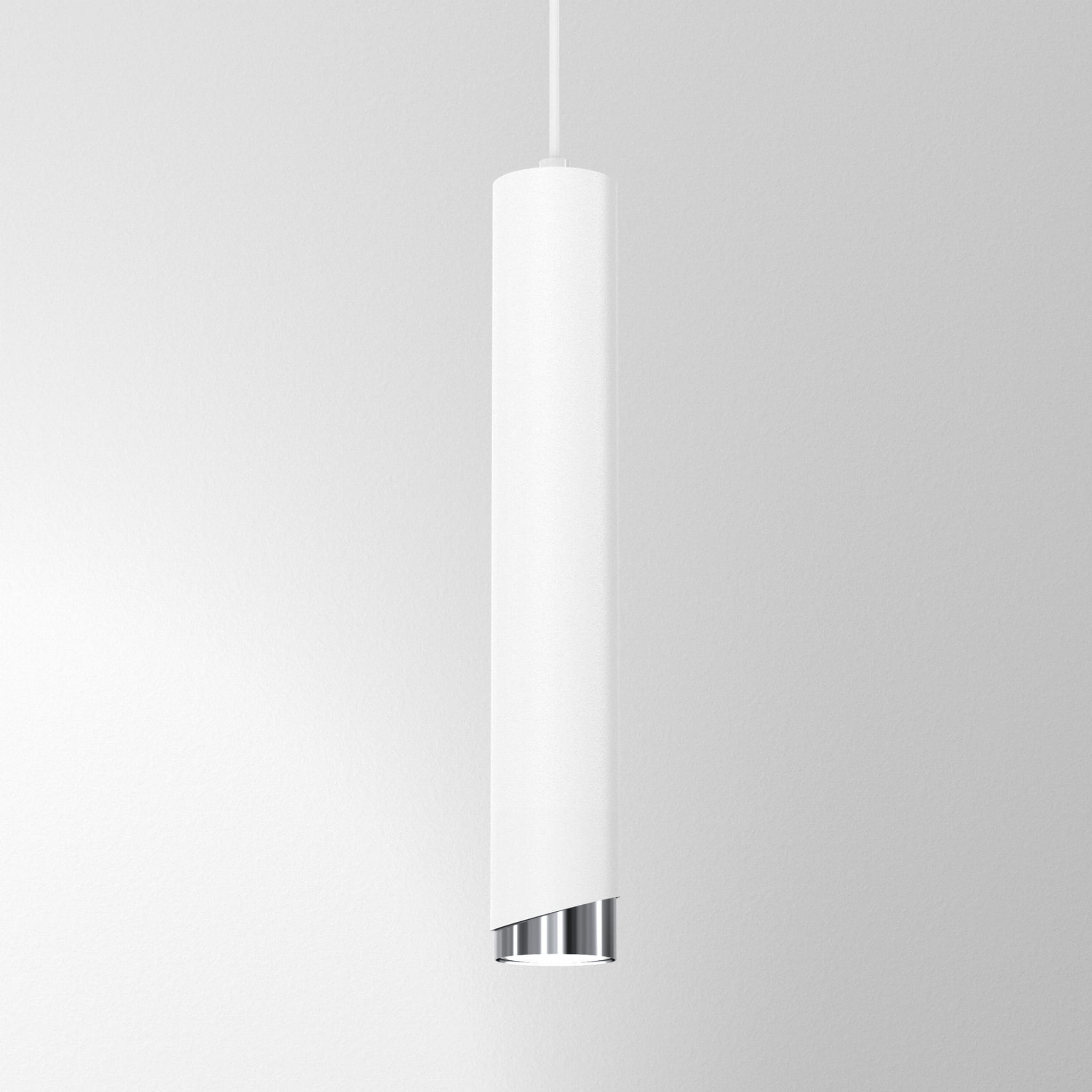 Lampa wisząca Aurora Luxe Silver Biała to wyjątkowe połączenie nowoczesnego designu, minimalistycznej formy i eleganckiego wykończenia. Smukła, cylindryczna konstrukcja w białym kolorze, uzupełniona subtelnym srebrnym akcentem, sprawia, że lampa doskonale podkreśla charakter współczesnych wnętrz.