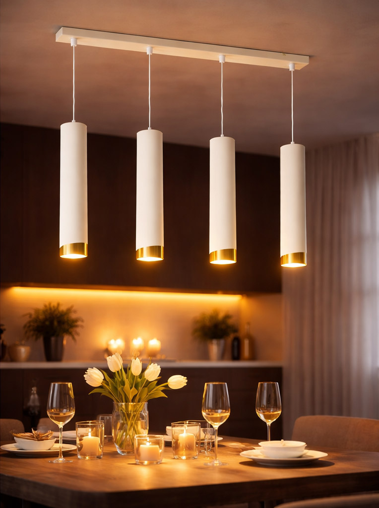 Świetnie sprawdzi się nad długim stołem, wyspą kuchenną lub w otwartych strefach dziennych. -