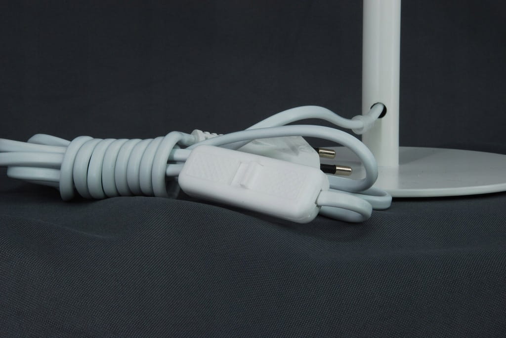 Abażur lampy wykonany jest z subtelnej, bawełnianej tkaniny