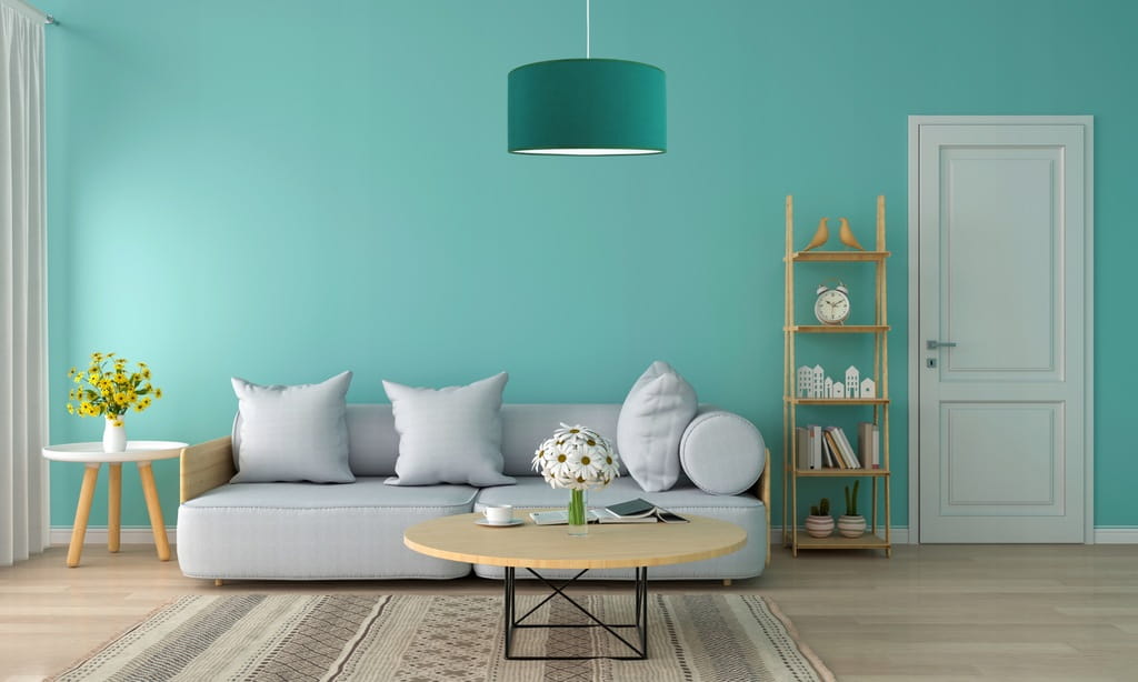 Modny kolor abażurów – butelkowa zieleń na białej folii PVC daje piękny efekt świetlny.