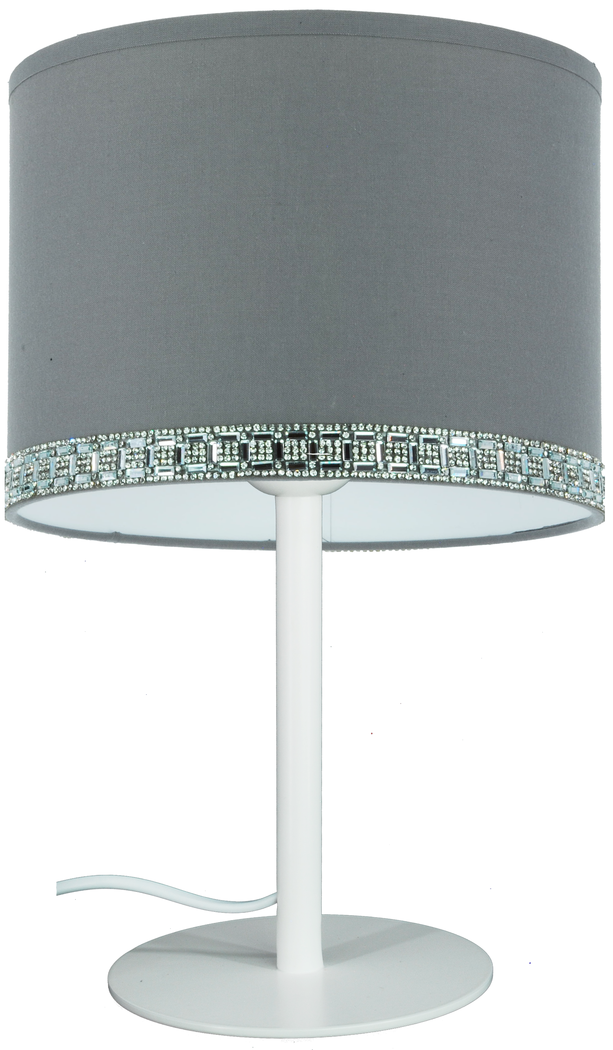 Każda lampa z tej serii została zaprojektowana z myślą o detalach. Abażury w odcieniu eleganckiej szarości mają klasyczny walcowaty kształt, który dobrze komponuje się z nowoczesnymi i klasycznymi wnętrzami. Dolna krawędź abażura została ozdobiona dekoracyjnym pasem z kryształków, które efektownie odbijają światło i dodają lampie luksusowego wyglądu.
