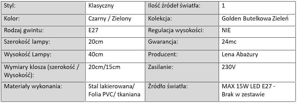 Kolekcja Golden Butelkowa Zieleń to propozycja dla osób, które szukają połączenia ponadczasowej elegancji z modnym, głębokim kolorem. Lampy z tej serii łączą w sobie styl, funkcjonalność i wyrafinowanie, dzięki czemu stanowią nie tylko źródło światła, ale również wyjątkowy element dekoracyjny w każdym wnętrzu.