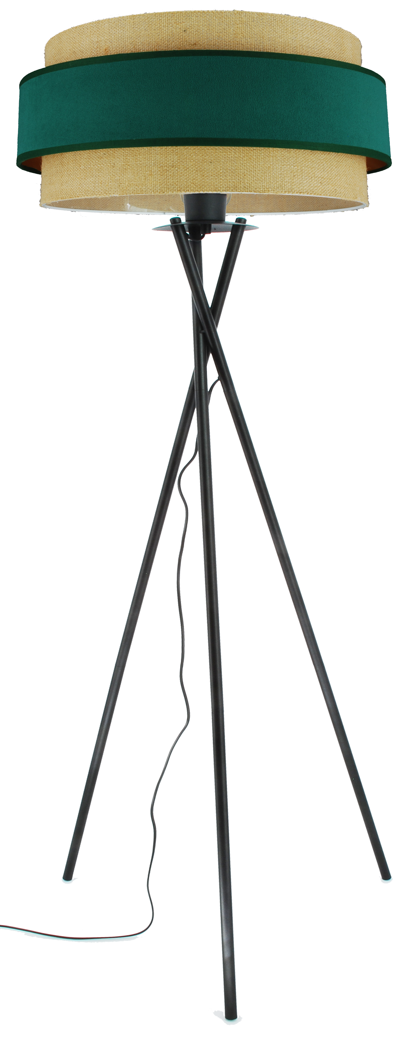 Nowoczesna Lampa Podłogowa Stojąca BOHO - DUO Juta z Welurem Butelkowo Zielonym / 1xE27 / Czarna
