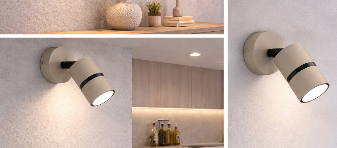 Ruchoma głowica umożliwia precyzyjne ustawienie kąta padania światła. Dzięki temu kinkiet świetnie sprawdzi się jako: