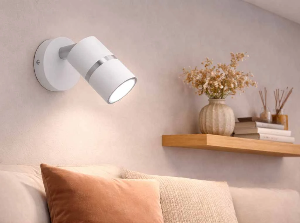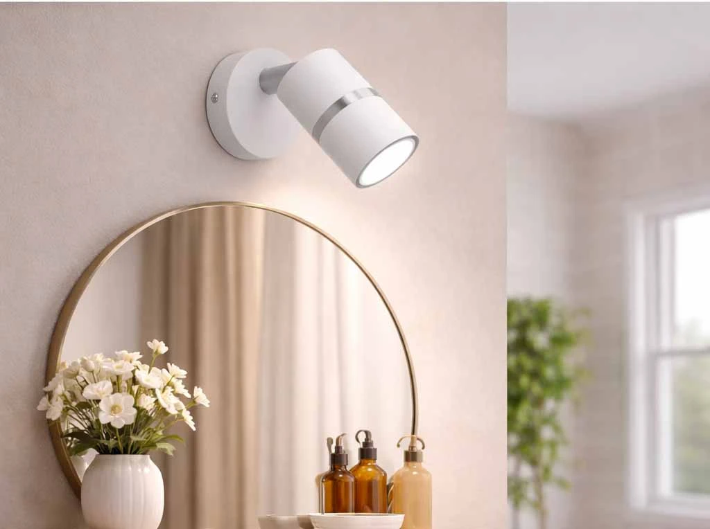 Kinkiet został wyposażony w ruchomy reflektor, który umożliwia swobodne ustawienie kierunku światła. Dzięki temu możesz: