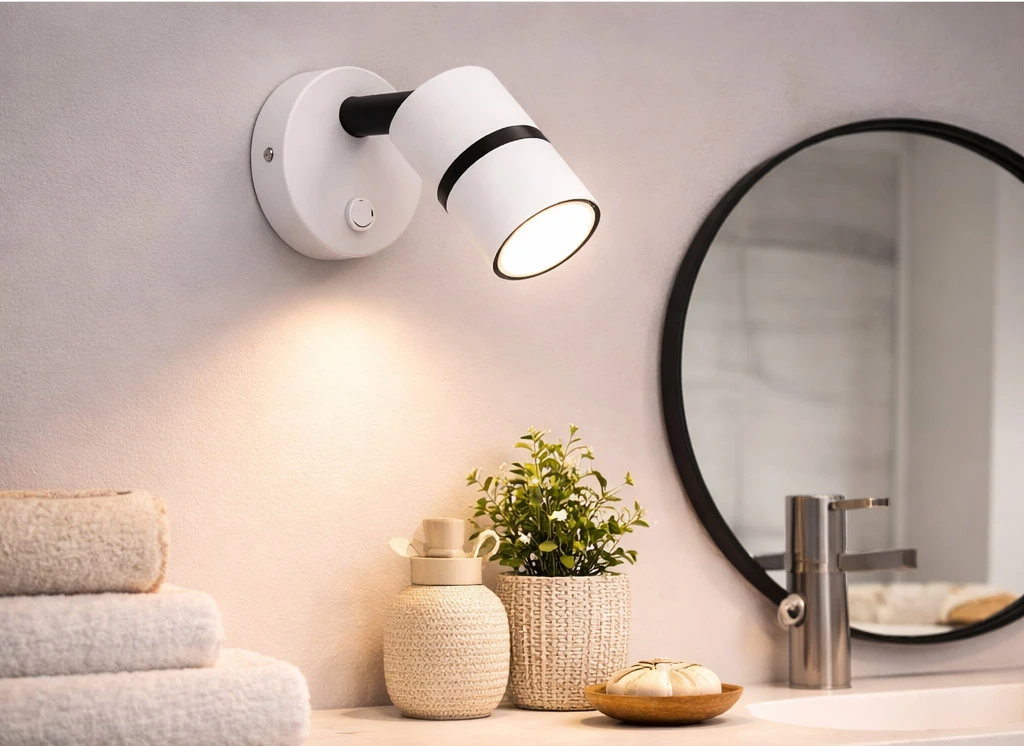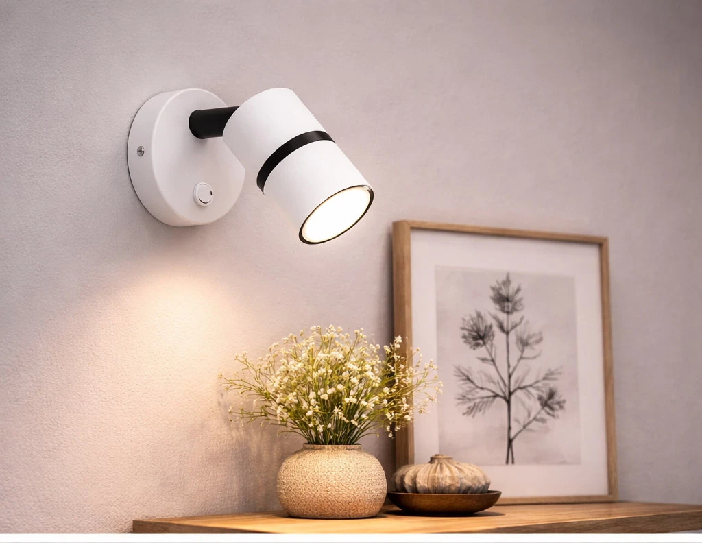 Aurora Black&White z włącznikiem to nowoczesny kinkiet ścienny typu spot, który łączy minimalistyczny design z maksymalną wygodą użytkowania. Wyposażony w praktyczny włącznik umieszczony na podstawie, zapewnia szybkie i komfortowe sterowanie światłem bez potrzeby korzystania z instalacji głównej.