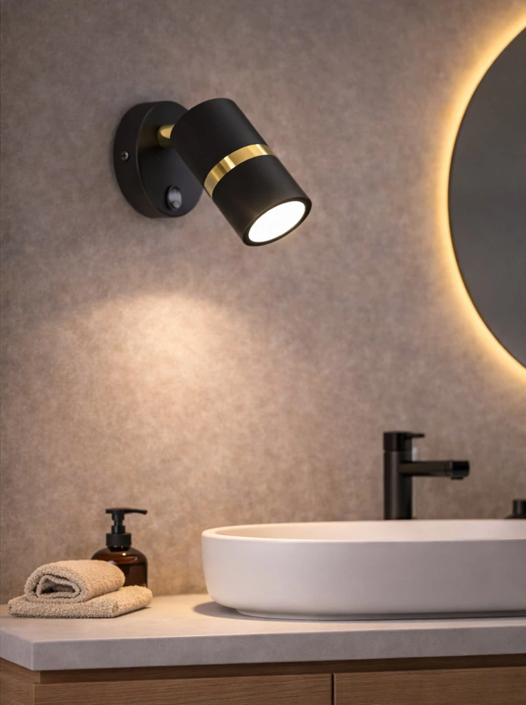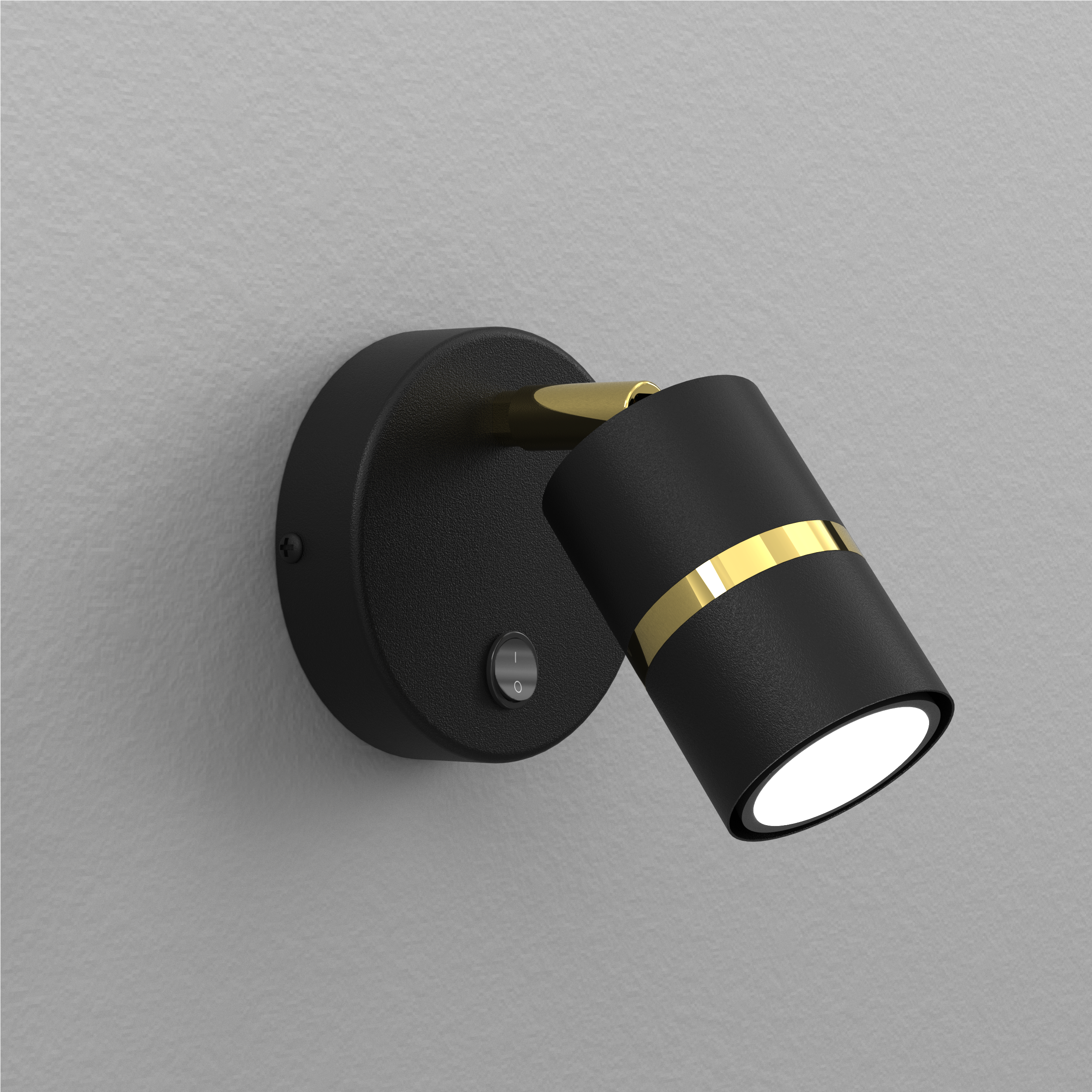 AURORA GOLD Czarna z włącznikiem to stylowy kinkiet, który zapewnia wygodne oświetlenie punktowe i podkreśla nowoczesny charakter wnętrza.