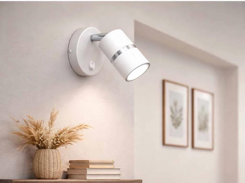 Kinkiet wyposażony jest w ruchomą głowicę, która umożliwia precyzyjne ustawienie kierunku światła. Dzięki temu możesz:
