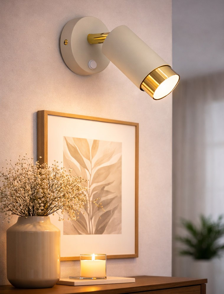 Aurora Luxe Gold Beżowa Wall Switch – nowoczesny kinkiet ścienny premium z włącznikiem