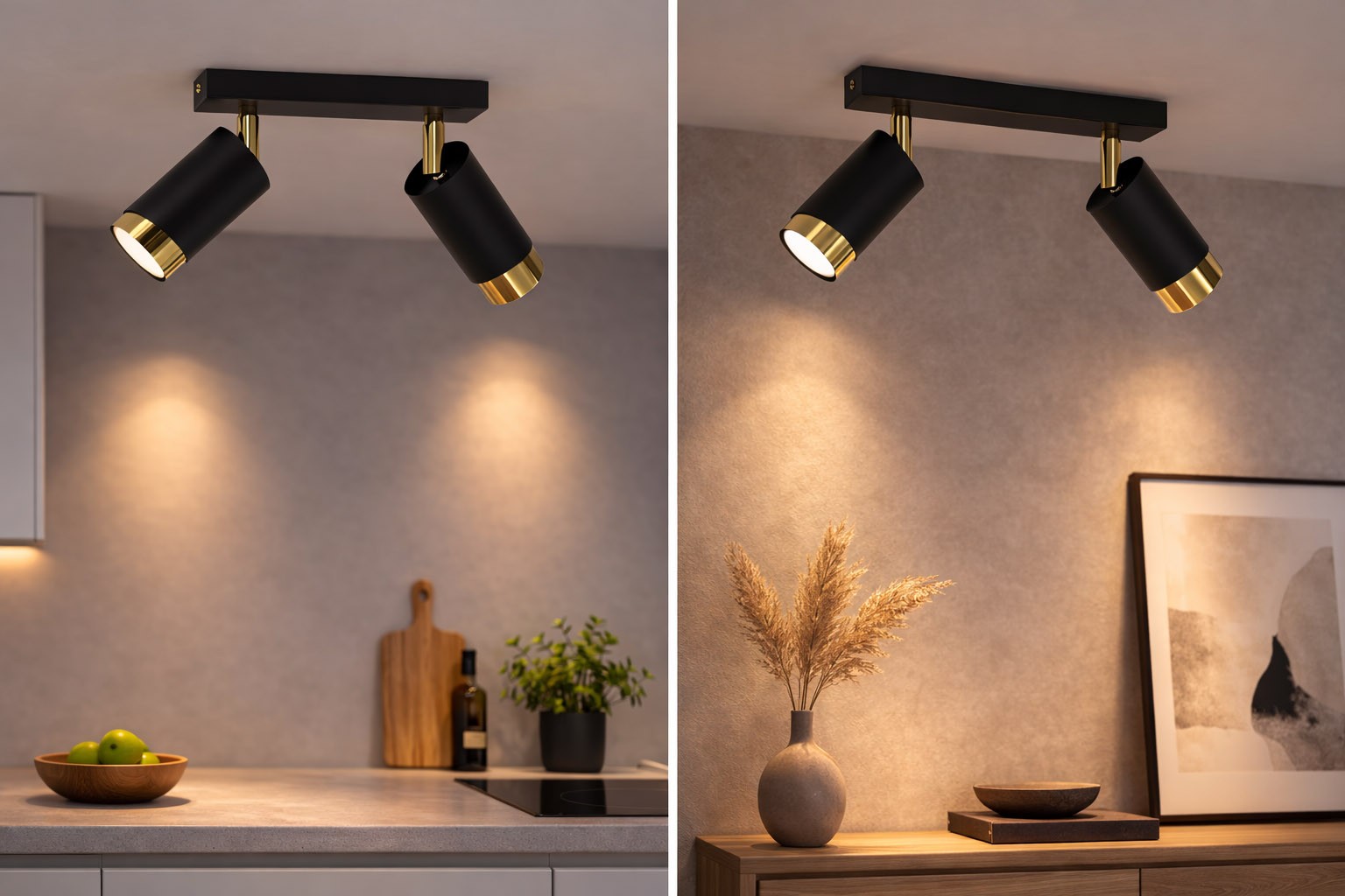 Dzięki swojej prostej formie i eleganckiemu połączeniu czerni oraz złota, lampa doskonale wpisuje się w aranżacje nowoczesne, loftowe, glamour oraz modern classic. To idealny wybór dla osób, które szukają stylowego oświetlenia punktowego do salonu, kuchni lub korytarza.