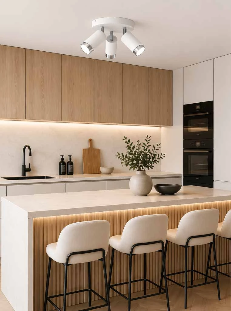 Każdy z reflektorów posiada możliwość regulacji, co pozwala skierować światło dokładnie tam, gdzie jest potrzebne. Dzięki temu bez problemu doświetlisz różne strefy pomieszczenia – od miejsca pracy, po przestrzeń relaksu czy elementy dekoracyjne.