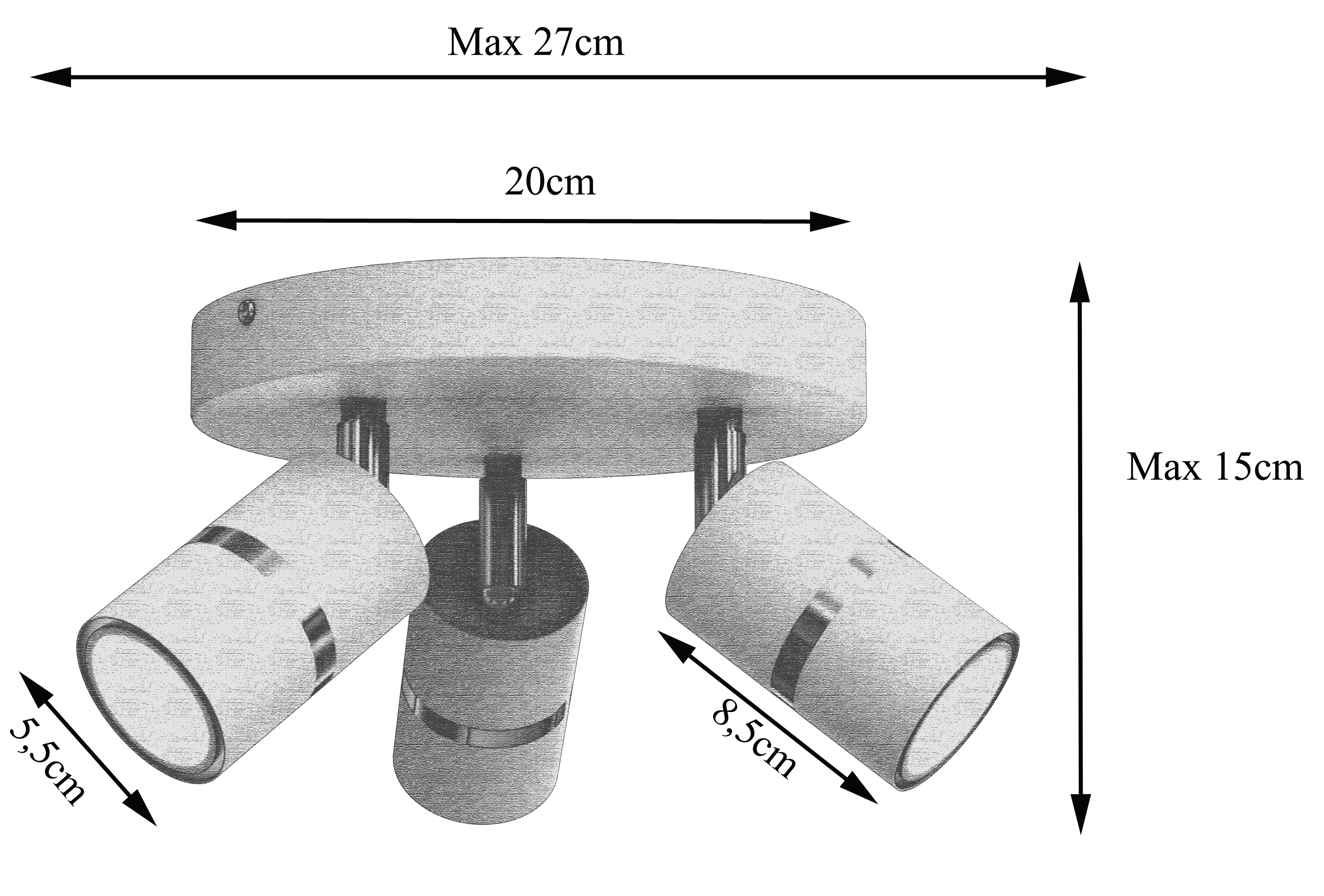 Aurora Luxe Silver Biała 3-punktowa to połączenie minimalistycznej estetyki z eleganckim wykończeniem. Trzy cylindryczne reflektory osadzone na okrągłej podsufitce tworzą spójną, nowoczesną formę. Matowa biel harmonijnie współgra ze srebrnymi akcentami, które dodają lampie subtelnego, luksusowego charakteru.