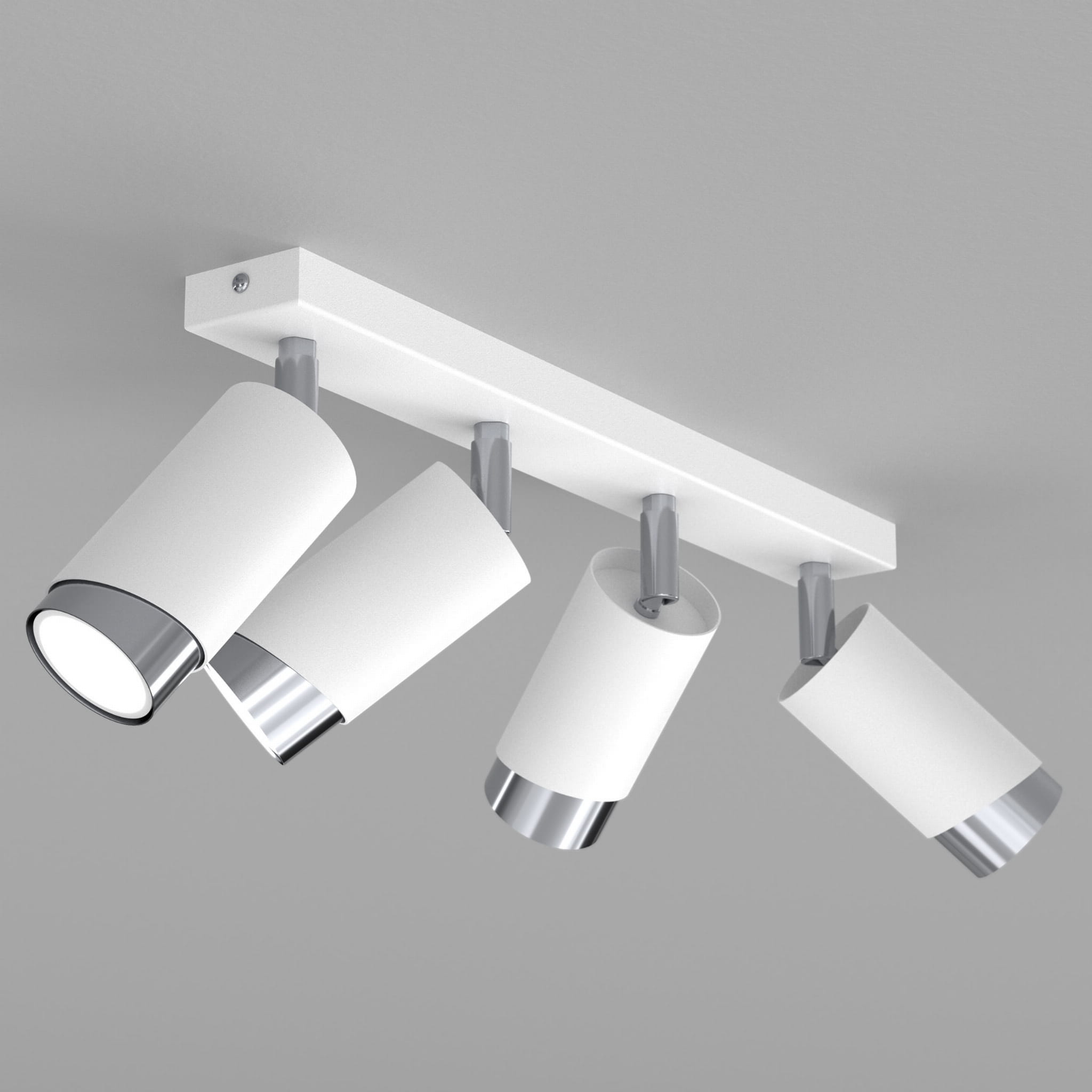 Aurora Luxe Silver Biała w wersji 4-punktowej to propozycja dla osób, które cenią estetykę opartą na prostocie i dopracowanych detalach. Cztery smukłe reflektory w matowej bieli zostały osadzone na minimalistycznej listwie, tworząc spójną i elegancką kompozycję. Subtelne, srebrne wykończenia dodają całości lekkości i nowoczesnego charakteru, dzięki czemu lampa świetnie wpisuje się w aktualne trendy wnętrzarskie.