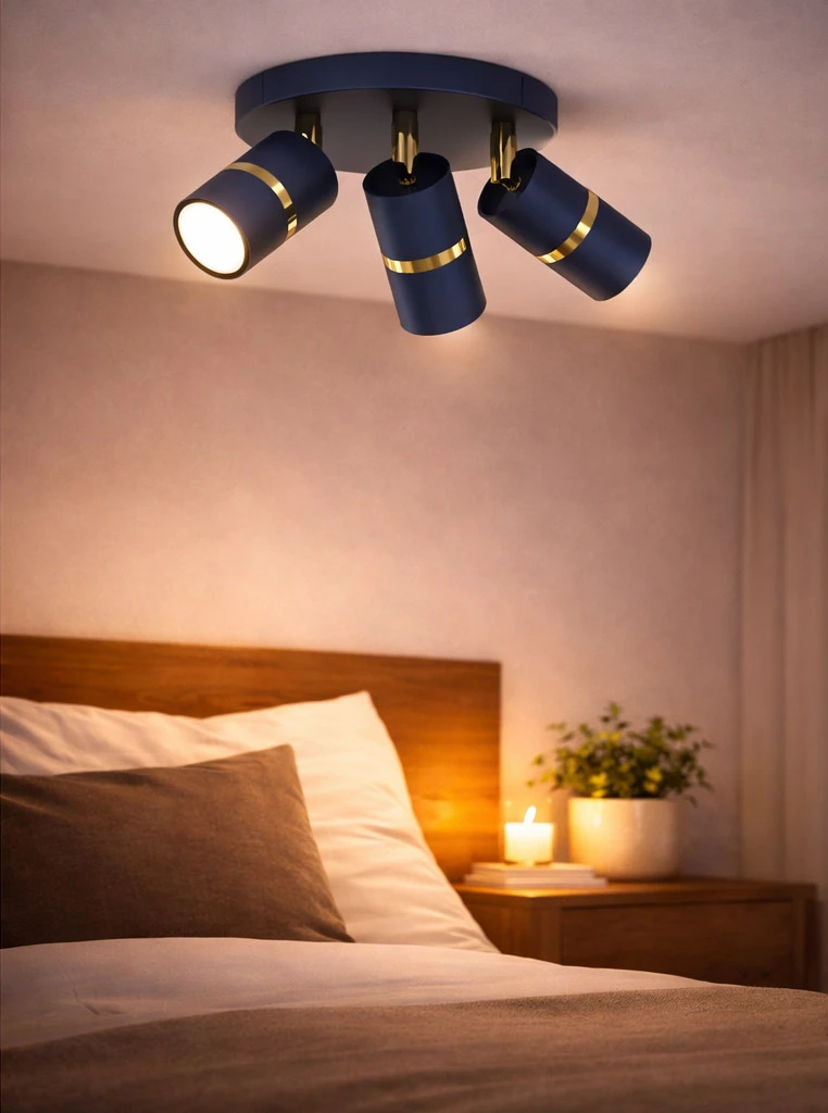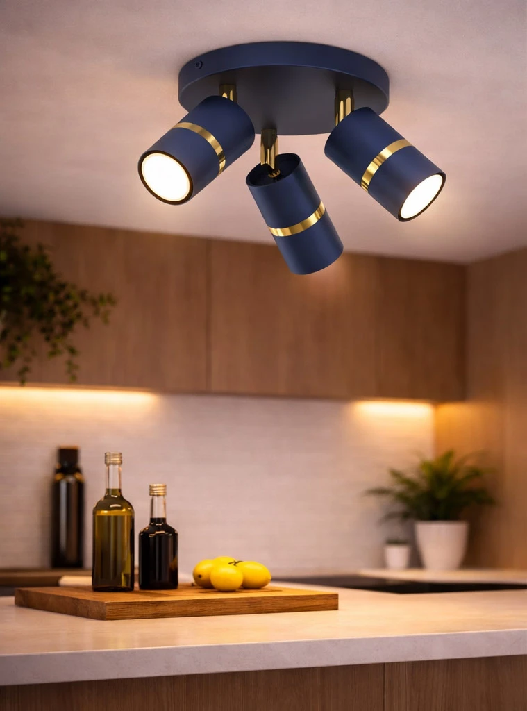 Jeśli szukasz nowoczesnej lampy sufitowej GU10 z trzema punktami światła, która łączy estetykę premium z funkcjonalnością, Aurora Gold Granatowa Round 3 będzie idealnym wyborem.