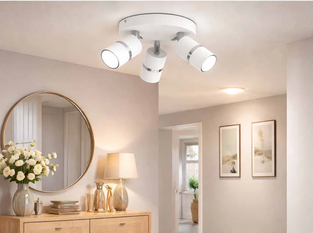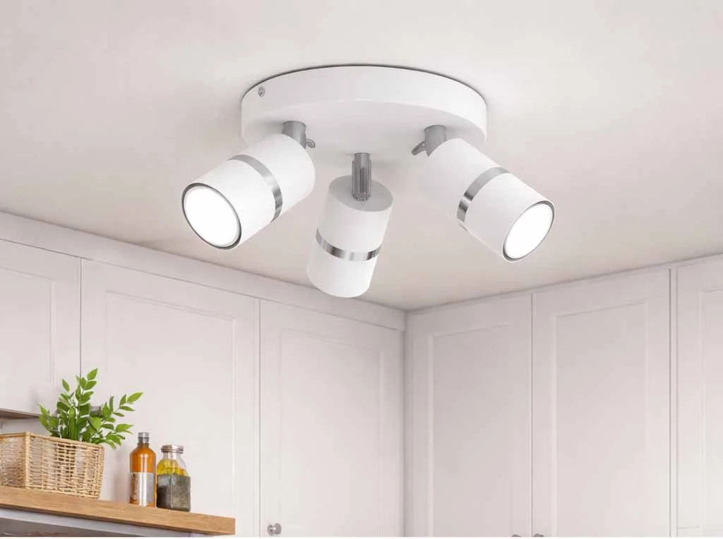 Model Aurora Silver został wyposażony w 3 regulowane reflektory, które umożliwiają dowolne ustawienie kierunku światła. Dzięki temu możesz łatwo dopasować oświetlenie do funkcji pomieszczenia: